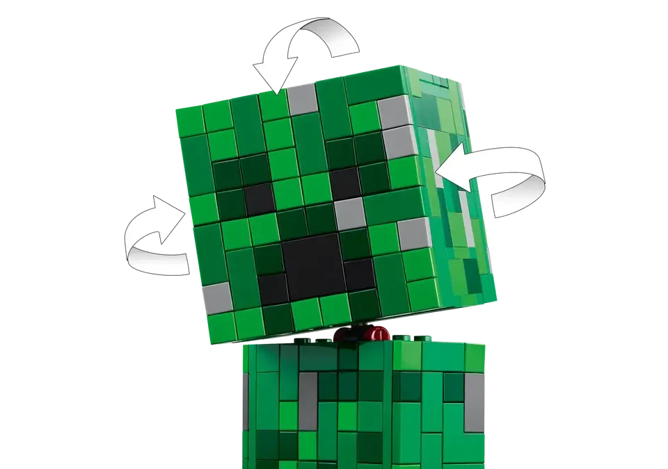 פתיחה עם הפתעה – החלק הקדמי של ראש ה־Creeper™ נפתח כדי לחשוף מקום פנימי הכולל מיניפיגורינה של Creeper מהגרסה הראשונה ואלמנט TNT.