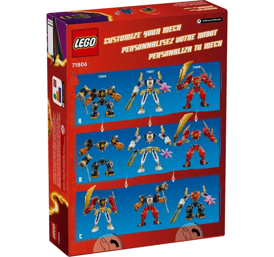 בנייה והתאמה אישית – הרגליים, הזרועות והחלק העליון של המכונה ניתנים לשילוב עם Sora’s Elemental Tech Mech (71807) ו-Kai’s Elemental Fire Mech (71808) (נמכרים בנפרד) ליצירת רובוט ייחודי.
