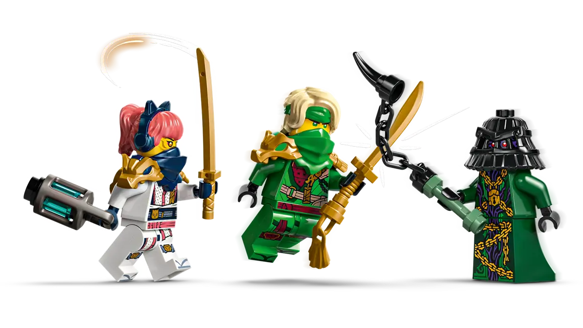 בנוסף, הסט כולל מקדש קטן מבני לבנים עם מסר סודי שהילדים יכולים לחשוף באמצעות אביזר הלהב השקוף של לויד.